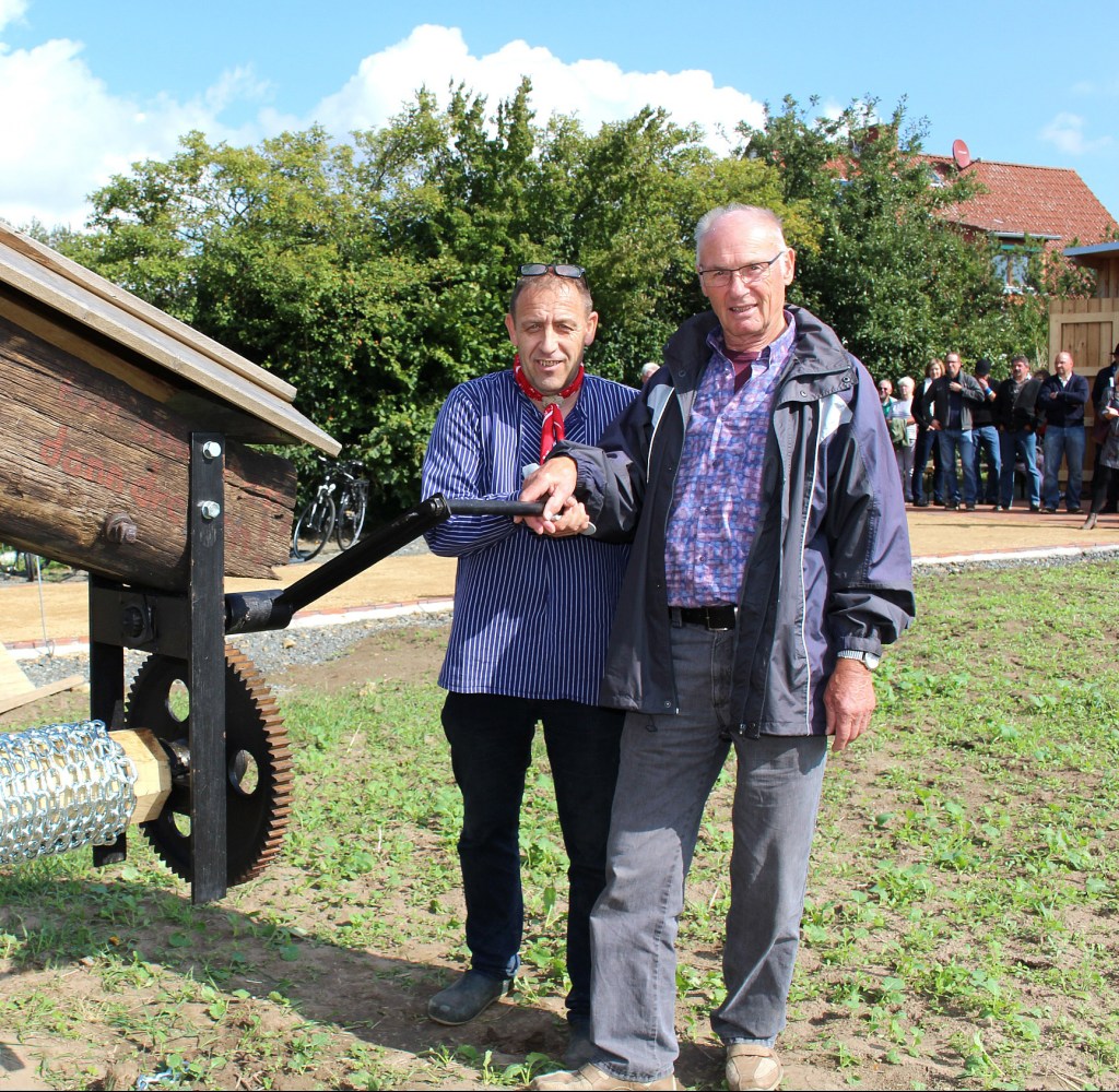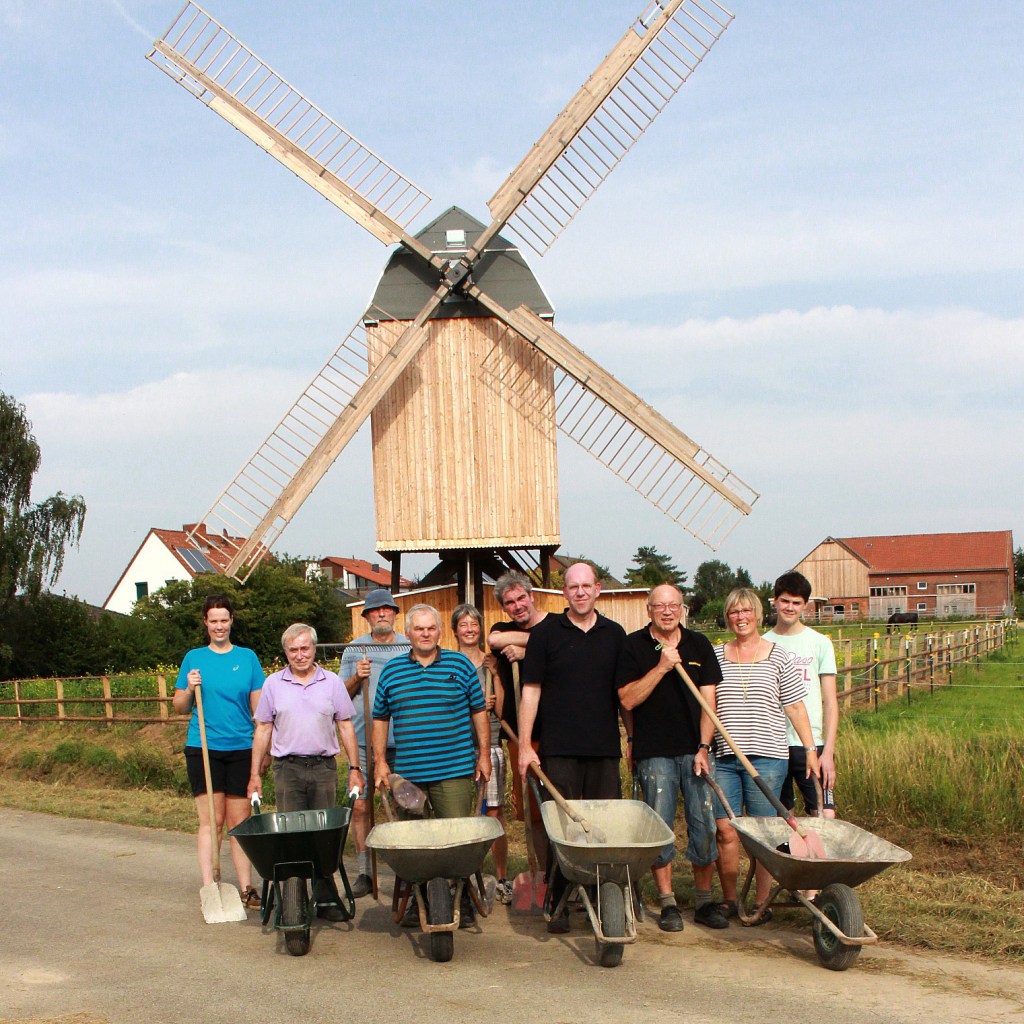 10.9.2017, die Einweihungsfeier vorbereiten und durchführen10.9.2017, noch einmal symbolisch Hand anlegen zur Einweihung22.7.2017, Auffüllen der Zuwegung mit Blümchenkies10.5.2017, Toilettenaufhängungen im Vereinsheim anbringen29.4.2017, Wände und Decke im Vereinsheim verkleiden29.4.2017, Wände und Decke im Vereinsheim verkleiden29.4.2017, Bodenoberfläche um das Mühlenfundament herum verfeinern29.4.2017, Außengelände um das Mühlenfundament herum planieren29.4.2017, Innenwände im Vereinsheim verkleiden29.4.2017, Innenwände im Vereinsheim verkleiden25.4.2917, Schächte für Strom- und Wasserversorgung zuschütten25.4.2017, Strom- und Wasserversorgung für das Vereinsheim verlegen30.3.2017, den Zuweg zum Vereinsheim befestigen16.3.2017, um das Mühlenfundament herum planieren21.2.2017, Boden und Geländerpfosten der Brücke befestigen20.2.2017, Bohlen für den Bau der Brücke stapeln17.11.2016, Reste des Fundaments der alten Mühle ausgraben17.11.2016, Fundamentsteine der Mühle ausgraben und bergen11.9.2016, Zuwegung für den Autokran bereitstellen30.10.2016, beim Abbau der Mühle mithelfen