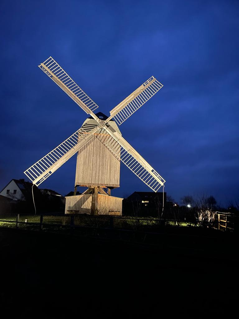 Lange haben wir überlegt und nach den passenden Leuchtmitteln gesucht. Nun geht die Außenbeleuchtung der Mühle in den Testbetrieb. Sie ist zeitgesteuert und mit dem jeweiligen Sonnenuntergang verknüpft.