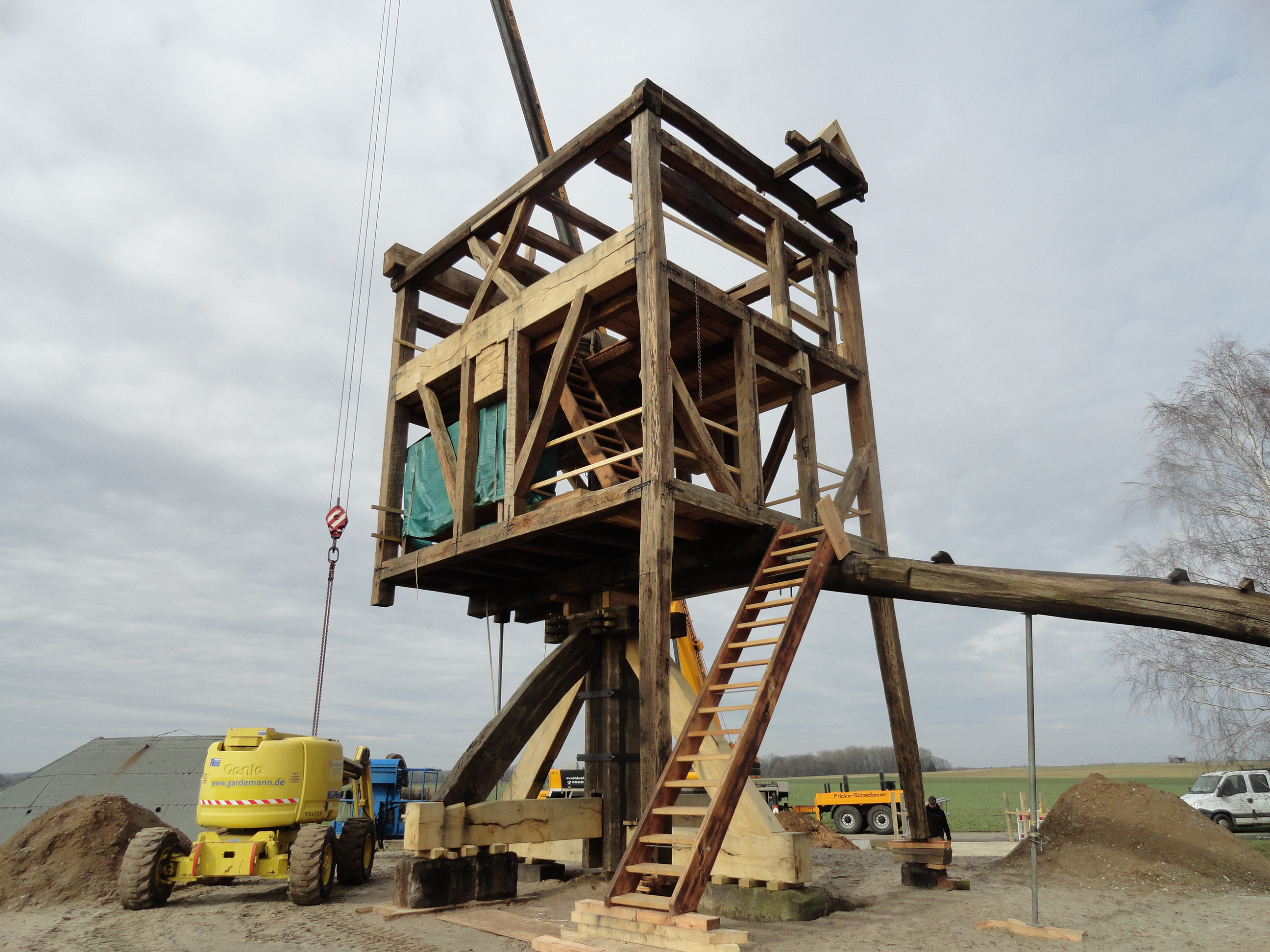 Vorheriges Bild Nächstes Bild muehle_20170309_11_28 Neubau Mühle 9.3.2017: Der Boden der 2. Etage ist eingebaut, auch der Treppenaufgang steht