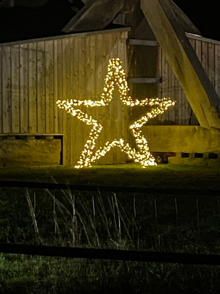 In diesem Jahr haben wir die Beleuchtung um einen selbstgebauten Weihnachtsstern ergänzt. Diese wurde aus alten Holzböcken, die wir eigentlich wegschmeißen wollen, upgecycelt. Wir finden das Upcycling sehr gelungen!