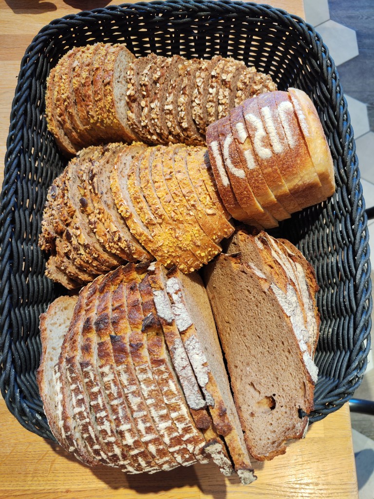Zunächst stand eine kurze Einführung in die Firmengeschichte sowie eine Brotverkostung auf dem Programm. Carsten Richter sowie seine Söhne Jan und Jakob stellten uns die einzelnen Brotsorten sowie deren Gemeinsamkeiten und Unterschiede vor. Alle Sorten konnten mit etwas Butter und, wenn gewünscht, Salz probiert werden.